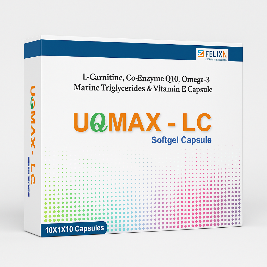 At Felixn Pharmaceuticals, we believe good health begins with strong energy at the cellular level. UQMAX-LC is an advanced nutraceutical formulation that supports cardiac wellness, energy metabolism, and muscle performance.